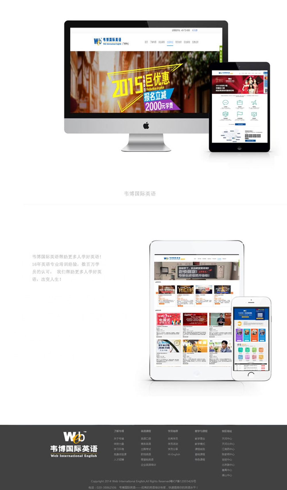 韦博国际英语于1998年秉承“为中国人提供更好、更快捷学习英语方法”的宗旨来到中国,独创的“三阶段多元学习法”,结合全球知名的英语学习系统开发者和领导者——来自美国硅谷的先进教学软件历经20年在全球70多个国家成功的实践经验,并在中国经济最活跃的上海、深圳、广州、大连、重庆、杭州、宁波、无锡、南京、沈阳、乌鲁木齐、苏州、常州、温州、厦门……等地开办了近70所培训中心。 目前人浪开发的教育网站系统具有:信息发布系统、网上报名系统、网上购书系统、远程视频教学系统、网上考试系统、问答知道系统、学员博客系统和招生办公管理系统,通过结合人浪最新开发的WAP手机版本的功能,能够为各大培训机构和院校进行招生提供更多的帮助和扩大招生资源及服务范围。人浪目前开发的教育网站案例有:成考门户、自考门户、会计门户、导游门户、报关员门户、人力门户、教育集团企业、幼儿园、项目管理师等等。